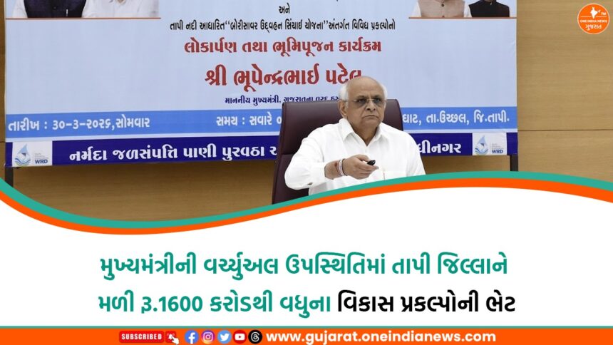 ગુજરાતના મુખ્યમંત્રી ભૂપેન્દ્ર પટેલએ ગાંધીનગરથી વર્ચ્યુઅલ માધ્યમ દ્વારા તાપી જિલ્લાના આદિવાસી વિસ્તારો માટે અંદાજિત ₹1600 કરોડની મહત્ત્વપૂર્ણ સિંચાઈ યોજનાઓનું ઇ-લોકાર્પણ અને ઇ-ખાતમુહૂર્ત કર્યું હતું. આ યોજનાઓમાં ઉકાઈ જળાશય આધારિત સોનગઢ, ઉચ્છલ અને નિઝર ઉદ્વહન સિંચાઈ યોજના તેમજ બોરીસાવર ઉદ્વહન સિંચાઈ યોજનાનો સમાવેશ થાય છે.