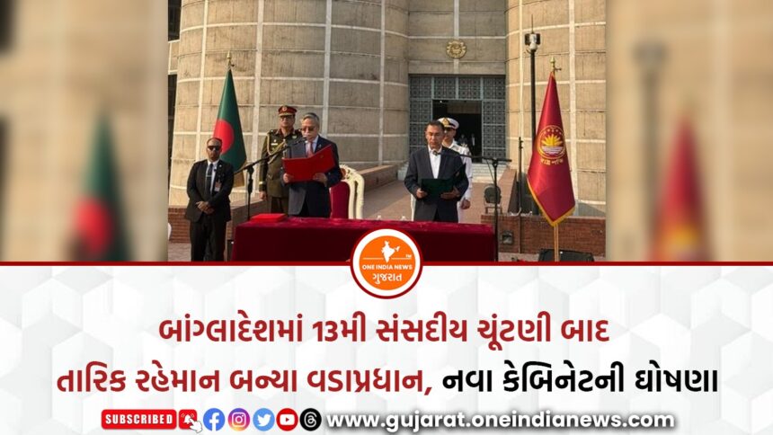 બાંગ્લાદેશમાં 13મી સંસદીય ચૂંટણીના પરિણામો જાહેર થયા બાદ નવી સરકાર રચાઈ ચૂકી છે. 17 ફેબ્રુઆરી, 2026 (મંગળવાર)ના રોજ બાંગ્લાદેશ નેશનલિસ્ટ પાર્ટી (BNP)ના વડા તારિક રહેમાન બાંગ્લાદેશના વડાપ્રધાન પદના શપથ લીધા. આ સાથે બાંગ્લાદેશમાં અંદાજે 30 વર્ષ પછી પુરૂષ વડાપ્રધાન પદે પ્રવેશ કર્યો છે. NCPના સાંસદોએ આ શપથગ્રહણનો વિરોધ વ્યક્ત કર્યો છે.