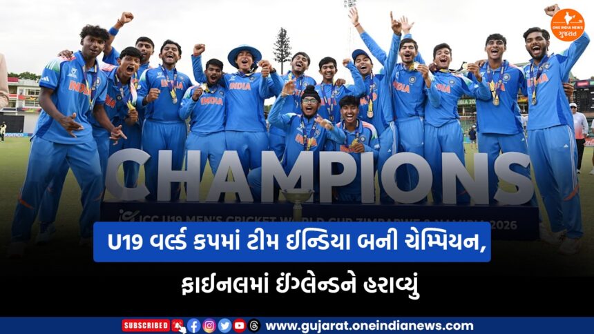ભારતીય ક્રિકેટ ટીમે ICC અંડર-19 વર્લ્ડ કપ 2026ની ફાઈનલમાં ઐતિહાસિક પ્રદર્શન કરીને ક્રિકેટ જગતમાં ફરી એકવાર પોતાનો દબદબો સાબિત કર્યો છે. ઈંગ્લેન્ડ સામે રમાયેલા આ મહામુકાબલામાં ભારતે 100 રનથી ભવ્ય જીત મેળવી અને ટૂર્નામેન્ટના ઇતિહાસમાં પોતાની છઠ્ઠી ટ્રોફી જીતવામાં સફળતા મેળવી. પહેલા બેટિંગ કરતા ભારતે શરૂઆતથી જ આક્રમક રમત બતાવી હતી અને નિર્ધારિત 50 ઓવરમાં 9 વિકેટના નુકસાન પર 411 રનનો વિશાળ સ્કોર ઉભો કર્યો હતો. આ સ્કોર અંડર-19 વર્લ્ડ કપની ફાઈનલ મેચોમાં અત્યાર સુધીનો સૌથી મોટો સ્કોર બની ગયો છે, જે ભારતીય ટીમની શક્તિ અને આત્મવિશ્વાસનું પ્રતિબિંબ છે. ભારતે ઈંગ્લેન્ડને જીત માટે 412 રનનો કઠિન ટાર્ગેટ આપ્યો હતો, જેના જવાબમાં ઈંગ્લેન્ડની ટીમ ભારતીય બોલરો સામે ખાસ ટકી શકી નહીં અને 40.2 ઓવરમાં 311 રન પર ઓલઆઉટ થઈ ગઈ.