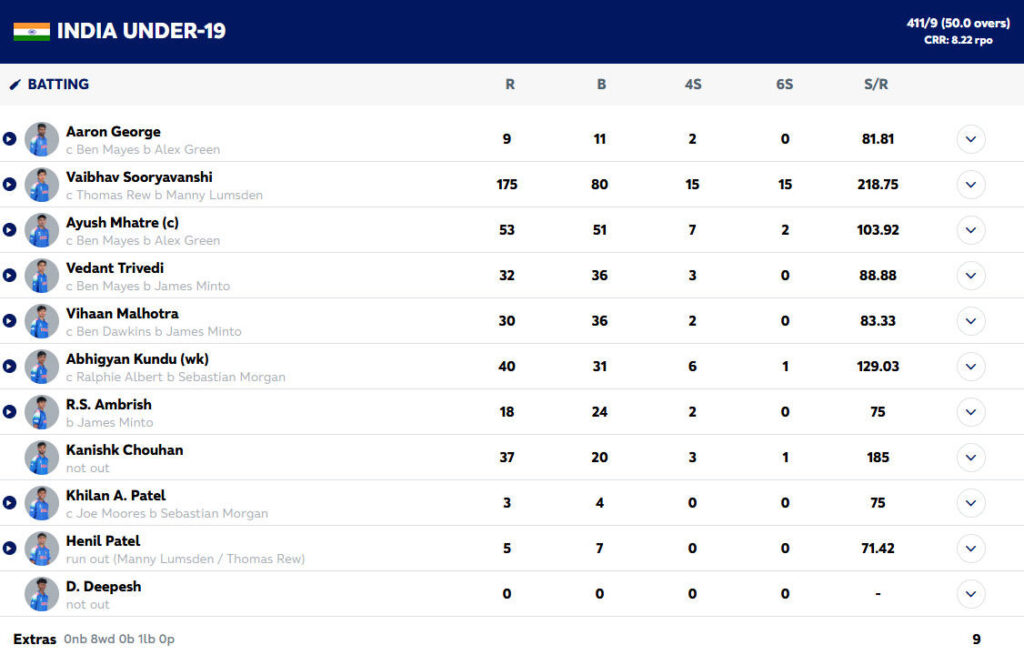 ટીમ ઈન્ડિયાની ઈનિંગ : 411/9 (50.0 overs)