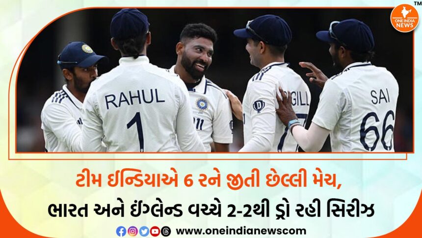 ઓવલના ઐતિહાસિક મેદાન પર ભારતીય ટીમે એક ઐતિહાસિક અને રોમાંચક જીત હાંસલ કરી છે, જેના દ્વારા તેણે પાંચ મેચોની ટેસ્ટ શ્રેણી 2-2થી ડ્રોમાં સમાપ્ત કરી. આ જીત ખાસ એટલા માટે નોંધપાત્ર રહી કે આ પહેલું એવું પ્રસંગ બન્યો જ્યારે ભારતીય ટીમે વિદેશી ધરતી પર પાંચ ટેસ્ટ મેચોની શ્રેણીના છેલ્લો ટેસ્ટ જીત્યો. મુકાબલો એટલો ઘમાસાણ રહ્યો કે જીત અને હાર વચ્ચે ફક્ત 6 રનનો તફાવત રહ્યો. ભારતીય ટીમની જીતના મુખ્ય નાયક રહી મોહમ્મદ સિરાજ, જેમણે બીજી ઈનિંગમાં 5 વિકેટ લઈ સમગ્ર મેચમાં 9 શિકાર કર્યા, અને તેમના સાથી પ્રસિદ્ધ કૃષ્ણાએ પણ ઝડપી અને અસરકારક બોલિંગ કરી, અને કીવટના સમયે મહત્વપૂર્ણ વિકેટો ઝડપી લીધી.