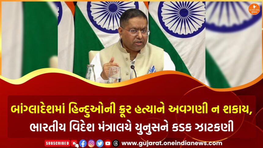 ભારત સરકારે બાંગ્લાદેશમાં ચાલી રહેલા રાજકીય સંકટ અને ત્યાં લઘુમતી હિન્દુઓ પર વધી રહેલા અત્યાચાર મુદ્દે કડક વલણ અપનાવ્યું છે. વિદેશ મંત્રાલયના પ્રવક્તા રણધીર જયસ્વાલે સ્પષ્ટ શબ્દોમાં કહ્યું છે કે બાંગ્લાદેશમાં લઘુમતીઓ પર થતી હિંસા ગંભીર ચિંતાનો વિષય છે અને તેને અવગણી શકાય નહીં. તેમણે મયમનસિંહ જિલ્લામાં હિન્દુ યુવક દીપુ ચંદ્ર દાસની ક્રૂર હત્યાની તીવ્ર નિંદા કરતા કહ્યું કે ભારતને આશા છે કે આ ઘટનાના તમામ આરોપીઓને કાયદાના કઠેડામાં લાવવામાં આવશે. સાથે જ તેમણે બાંગ્લાદેશની વર્તમાન વચગાળાની યુનુસ સરકારની નીતિઓ અંગે પણ ચિંતા વ્યક્ત કરી હતી.