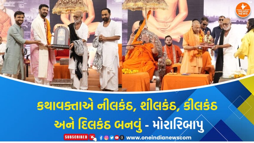 ઉત્તરપ્રદેશમાં રાજાપુરમાં તુલસી જન્મોત્સવ પ્રસંગે સંગોષ્ઠિ સાથે રત્નાવલી, તુલસી, વ્યાસ અને વાલ્મિકી સન્માન અર્પણ સમારોહમાં મુખ્યમંત્રી યોગી આદિત્યનાથની પ્રેરક ઉપસ્થિતિ રહી. આ પ્રસંગે મોરારિબાપુએ કહ્યું કે, કથાવક્તાએ નીલકંઠ, શીલકંઠ, કીલકંઠ અને દિલકંઠ બનવું.