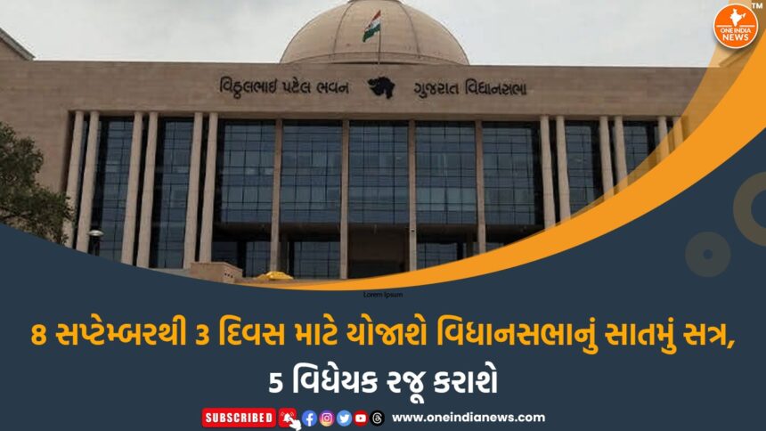 રાજ્યમાં આગામી 8થી 10 સપ્ટેમ્બર, 2025 દરમિયાન યોજાનારા ગુજરાત વિધાનસભાના 15મા કાર્યકાળના સાતમા સત્રમાં અનેક મહત્વપૂર્ણ ચર્ચાઓ અને વિધેયકો રજૂ થવાના છે. સત્રની શરૂઆત 8મી સપ્ટેમ્બરના રોજ પ્રશ્નોતરીથી થશે, ત્યારબાદ સમગ્ર દિવસ દરમિયાન વિવિધ શોકદર્શક પ્રસ્તાવો પર ચર્ચા કરીને ગૃહને મુલતવી રાખવામાં આવશે. 9 અને 10 સપ્ટેમ્બરના રોજ પ્રશ્નોતરી અને નિયમિત કામકાજ ઉપરાંત કુલ પાંચ મહત્વપૂર્ણ વિધેયકો રજૂ કરવામાં આવશે. આ વિધેયકોમાં શ્રમ, કૌશલ્ય વિકાસ અને રોજગાર વિભાગનું ‘કારખાના (ગુજરાત સુધારા) વિધેયક, 2025’, નાણા વિભાગનું ‘ગુજરાત માલ અને સેવા કર (દ્વીતિય સુધારા) વિધેયક, 2025’, ઉદ્યોગ અને ખાણ વિભાગનું ‘ગુજરાત જનવિશ્વાસ (જોગવાઇઓના સુધારા) વિધેયક, 2025’, તેમજ આરોગ્ય અને પરિવાર કલ્યાણ વિભાગના બે મહત્વપૂર્ણ વિધેયકો—‘ગુજરાત વૈદ્યક વ્યવસાયીઓનું (સુધારા) વિધેયક, 2025’ અને ‘ગુજરાત ચિકિત્સા સંસ્થાઓ (રજિસ્ટ્રેશન અને નિયમન) (સુધારા) વિધેયક, 2025’ શામેલ છે.