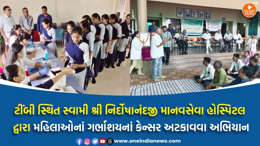 ટીંબી સ્થિત સુપ્રસિધ્ધ સ્વામી શ્રી નિર્દોષાનંદજી માનવસેવા હોસ્પિટલ દ્વારા મહિલાઓનાં ગર્ભાશયનાં કેન્સર અટકાવવા અભિયાન હાથ ધરાયું છે. રાજકોટની સંસ્થાના સંકલન વડે ટીંબી સાથે ઉમરાળા અને રંઘોળાથી રસીકરણ જાગૃતિ કાર્યક્રમનો પ્રારંભ થયો છે.