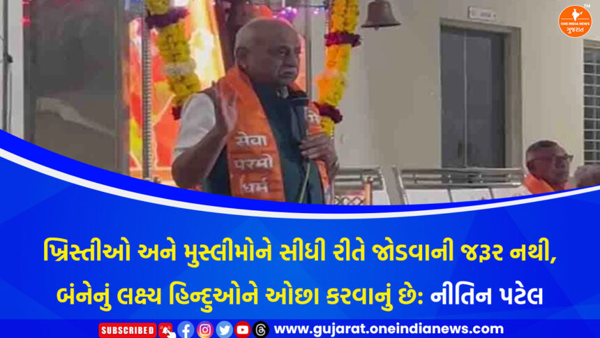 મહેસાણા જિલ્લામાં ઓમકાર સેવા મિશન ચેરીટેબલ ટ્રસ્ટની સાધારણ સભા યોજાઈ હતી. જેમાં રાજ્યના પૂર્વ નાયબ મુખ્યમંત્રી નીતિન પટેલ ઉપસ્થિત રહ્યા હતાં. આ સભામાં તેમણે ધર્માંતરણ મુદ્દે નિવેદન આપ્યું હતું. તેમણે કહ્યું હતું કે, દેશમાં હિન્દુઓની વસતી ઘટતી જાય છે. આપણાંમાં વિભાજન છે. ખ્રિસ્તીઓની વસતી વધી રહી છે. તેઓ હિન્દુઓનું ધર્માંતરણ કરી રહ્યાં છે. મુસ્લિમો અને ખ્રિસ્તીઓને સીધી રીતે જોડવાની જરૂર નથી. એ આખો વિષય અલગ છે.