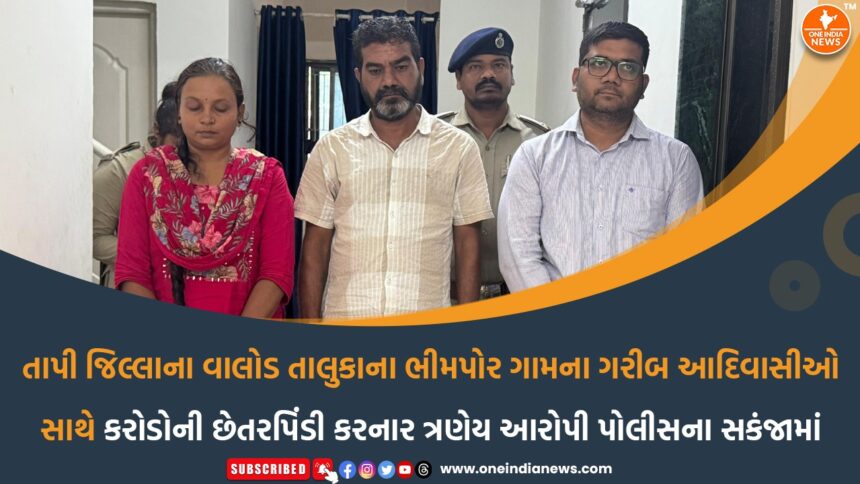 તાપી જિલ્લાના વાલોડ તાલુકાના ભીમપોર ગામના ગરીબ આદિવાસીઓ લોકોના ડોક્યુમેન્ટ લઈ દાનની રકમ આપવાની લાલચ આપી અલગ અલગ બેંકમાં તેમના ખાતા ખોલાવી ત્રણ ઈસમોએ શેર બજારમાં ટ્રેડિંગના નામે તેમના ખાતામાં કરોડો રૂપિયાનો વ્યવહાર કરી દેતા પોલીસે ત્રણેયને ઝડપી તેમની ઓફિસ અને ઘર ખાતે સર્ચ ઓપરેશન શરૂ કર્યું છે.