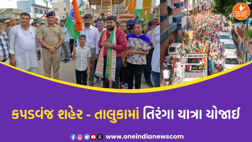 કપડવંજ શહેરમાં તિરંગા યાત્રા નગરની ગાંધીજીની પ્રતિમા (આઝાદચોક) થી પ્રસ્થાન થઈ નગરપાલીકા, મીના બજાર, કુબેરજી ચોકડી, ટાઉનહોલ વિસ્તારથી પરત ગાંધીજીની પ્રતિમા ખાતે પૂર્ણ થઈ હતી. યાત્રામાં કપડવંજ ધારાસભ્ય રાજેશ ઝાલા,પ્રાંત અધિકારી એ.પી.ઝાલા, મામલતદાર સંગીતા મેનીયા, ટી.ડી.ઓ. બીપીનભાઈ પરમાર, જિલ્લા ભાજપ સંગઠનના રાજેશ પટેલ, તાલુકા પંચાયત પ્રમુખ જે.કે.પરમાર, નગરપાલીકા પ્રમુખ વર્ષા પંચાલ, ટાઉન પી.આઈ. જનકસિંહ દેવડા, શહેર ભાજપ પ્રમુખ નયન પટેલ, ગણપત રાઠોડ, ધુળસિંહ સોલંકી, સુવર્ણ કૃપા જ્વેલર્સવાળા ભાજપ શહેર મંત્રી મયુર શર્મા, એપીએમસી પૂર્વ ચેરમેન નિલેશ પટેલ, પોલીસ સ્ટાફ, એન.સી.સી.તથા એન. એસ. એસ.કેડેટ્સ, શાળા તથા મહાશાળાના વિદ્યાર્થીઓ અને શિક્ષકો, પાલિકા સ્ટાફ,એમ. જી.વી.સી.એલ.સ્ટાફ, નગરપાલીકા સ્ટાફ, મધ્યાહન ભોજનના કર્મચારીઓ સહિત વિવિધ કચેરીના કર્મચારીઓ, મ્યુનિસિપલ સદસ્યો, ભાજપના કાર્યકરો અને હોદ્દેદારો,નગરજનો વગેરે વિશાળ સંખ્યામાં ઉપસ્થિત રહ્યા હતાં.