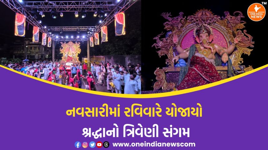 નવસારીમાં રવિવારે શ્રદ્ધાનો ત્રિવેણી સંગમ યોજાયો હતો. એક તરફ જ્યાં ભક્તો જન્માષ્ટમી પર્વને લઈને દહીંહાંડી ફોડી ઉજવણી કરી રહ્યાં હતા, તો બીજી તરફ શહેરમાં મોડી રાત સુધી વિવિધ મંડળો દ્વારા ગણેશ આગમન કરવામાં આવ્યું હતું. તો બીજે દિવસે શ્રાવણનો અંતિમ સોમવાર હોય શહેરમા કાવડ યાત્રા અને લોકો ચાલતા નવસારીથી દક્ષિણ ગુજરાતના સોમનાથ કહેવાતા બીલીમોરાના સોમનાથ મહાદેવ પહોંચ્યા હતા અને દેવાધિદેવના દર્શન કરી પૂજા અર્ચના કરી હતી.