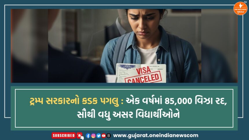 અમેરિકામાં ડોનાલ્ડ ટ્રમ્પની સરકારે ઇમિગ્રેશન નીતિને અત્યંત કડક બનાવતાં આ વર્ષે એક જ વર્ષમાં 85,000 વિઝા રદ કર્યા છે, જે છેલ્લા દાયકામાં સૌથી મોટો આંકડો માનવામાં આવે છે. અમેરિકી વિદેશ વિભાગ મુજબ, આ પગલું રાષ્ટ્રીય સુરક્ષા વધારવા, વિઝા સ્ક્રિનિંગ સિસ્ટમને વધુ સખત બનાવવા અને ‘હાઈ-રિસ્ક’ પ્રોફાઇલ ધરાવતા લોકોની ઓળખ ઝડપી કરવા માટે લેવામાં આવ્યું છે. આ નિર્ણયનો સૌથી મોટો ફટકો આંતરરાષ્ટ્રીય વિદ્યાર્થીઓને લાગ્યો છે, કારણ કે રદ કરેલા વિઝામાંથી 8,000થી વધુ વિઝા વિદ્યાર્થીઓના છે, જે ગયા વર્ષની સરખામણીમાં લગભગ બમણા છે. ટ્રમ્પ પ્રશાસનના ‘મેક અમેરિકા સેફ અગેન’ અભિયાન હેઠળ લેવામાં આવેલા આ પગલાનું સિદ્ધાંત એ છે કે અમેરિકાની અંદર પ્રવેશતા કે ત્યાં રહેતા દરેક વિદેશી નાગરિકનું પાશ્વભૂમિ ચકાસણ અત્યંત કડક રીતે કરવામાં આવે.