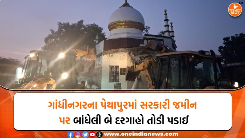 गुजरात में बुलडोजर एक्शन, गांधीनगर के पेथापुर में दो अवैध दरगाहें ध्वस्त