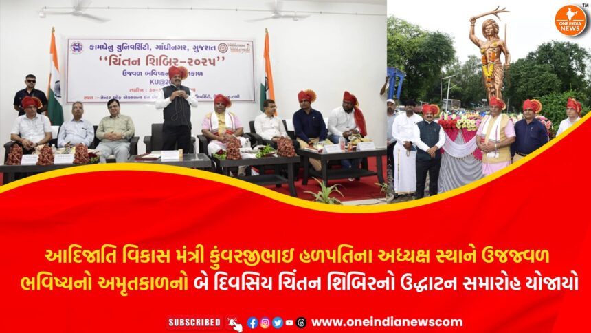 આદિજાતિ વિકાસ, શ્રમ અને રોજગાર, ગ્રામીણ વિકાસ ગુજરાત રાજ્યના માનનીય મંત્રી કુંવરજીભાઇ હળપતિના અધ્યક્ષ સ્થાને ઉજજ્વળ ભવિષ્યનો અમૃતકાળ કામધેનુ યુનિવર્સિટ ૨૦૪૭ હેઠળ આયોજિત બે દિવસિય ચિંતન શિબિરનો ઉદ્ધાટન સમારોહ યોજાયો હતો.