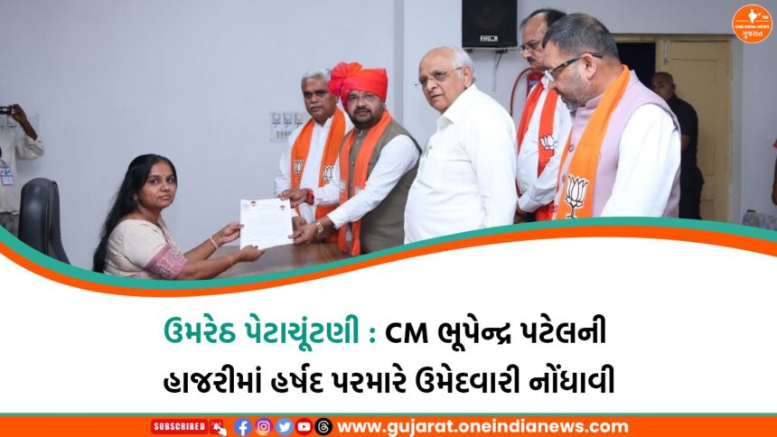 ગુજરાતમાં ચાલી રહેલી વિધાનસભાની પેટાચૂંટણીઓ વચ્ચે ઉમરેઠ બેઠક પર રાજકીય જંગ વધુ તેજ બન્યો છે. ભાજપે આ બેઠક જીતવા માટે પોતાની પૂરી તાકાત લગાવી દીધી છે. ભાજપના ઉમેદવાર હર્ષદ પરમારે આજે મુખ્યમંત્રી ભૂપેન્દ્ર પટેલની વિશેષ હાજરીમાં પોતાનું ઉમેદવારી પત્ર ભર્યું હતું.