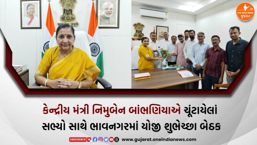 One India News > News > Bhavnagar > કેન્દ્રીય મંત્રી નિમુબેન બાંભણિયાએ ચૂંટાયેલાં સભ્યો સાથે ભાવનગરમાં યોજી શુભેચ્છા બેઠક