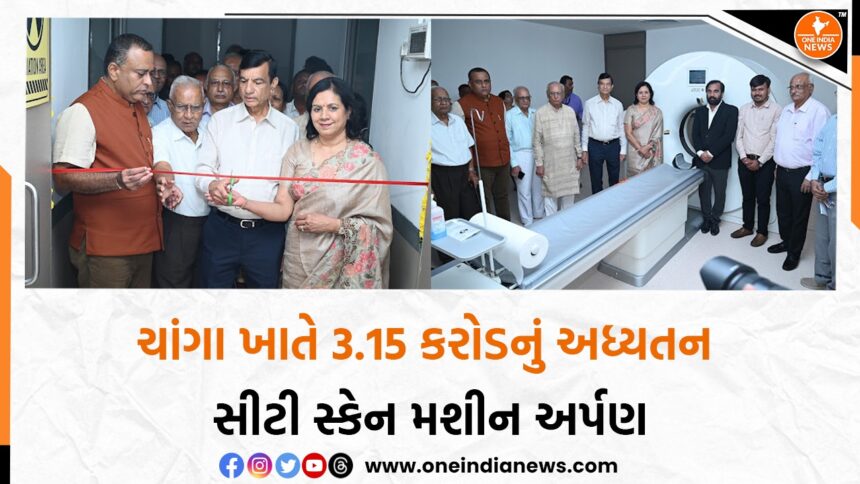 આણંદ જિલ્લાના ચાંગાના વતની, યુએસએ સ્થિત, વતન પ્રેમી ડો.અરુણ ડાહ્યાભાઈ પટેલ અને ડો. અંજના પટેલના રૂ. 3.25 કરોડના દાનથી ચાંગા હોસ્પિટલ ખાતે સમગ્ર દેશમાં પ્રથમ અધ્યતન સીટી સ્કેન મશીન (uCT 550 – 80 Slice Cardiac CT Scanner System) અર્પણ કરવાનો કાર્યક્રમ ચાંગા ચારુસેટ ખાતે યોજાયો હતો.