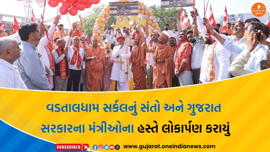 ત્યારબાદ સજાવેલી પુષ્પવર્ષા- રંગ બ્લાસ્ટ, શ્રીફળ અને મંત્રોચ્ચાર સાથે, આચાર્યશ્રી રાકેશપ્રસાદજી મહારાજ એવં મંત્રીઓ અને સંતોના હસ્તે સર્કલનું લોકાર્પણ કરવામાં આવ્યું હતું.. અને મંદિરની આરતી કરીને પ્રસાદ ગ્રહણ કર્યો હતો.