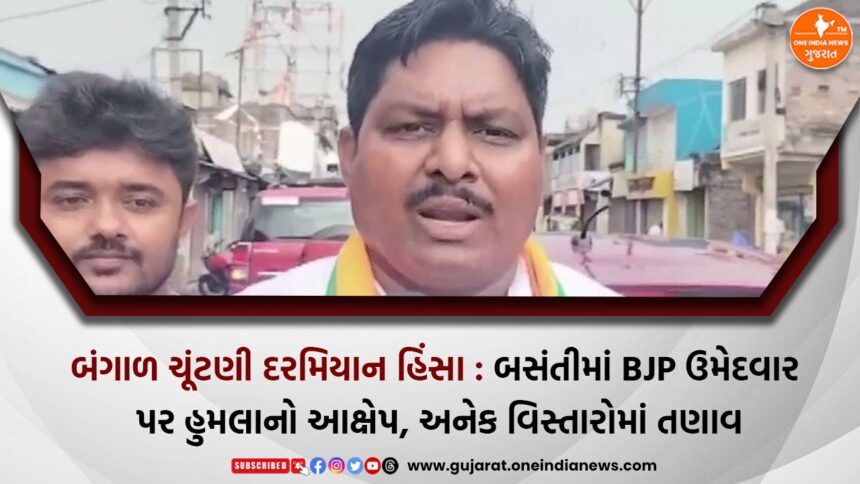 One India News > News > Gujarat > બંગાળ ચૂંટણી દરમિયાન હિંસા : બસંતીમાં BJP ઉમેદવાર પર હુમલાનો આક્ષેપ, અનેક વિસ્તારોમાં તણાવ