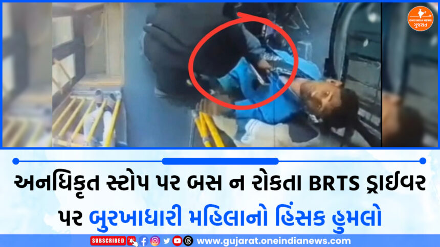 One India News > News > Gujarat > અનધિકૃત સ્ટોપ પર બસ ન રોકતા BRTS ડ્રાઈવર પર બુરખાધારી મહિલાનો હિંસક હુમલો