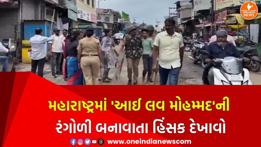 One India News > News > Gujarat > મહારાષ્ટ્રમાં ‘આઈ લવ મોહમ્મદ’ની રંગોળી બનાવાતા હિંસક દેખાવો