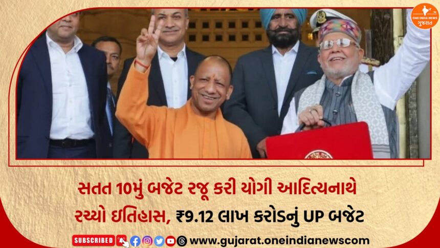 One India News > News > Gujarat > સતત 10મું બજેટ રજૂ કરી યોગી આદિત્યનાથે રચ્યો ઇતિહાસ, ₹9.12 લાખ કરોડનું UP બજેટ