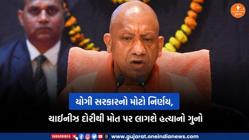 ઉત્તર પ્રદેશમાં ચાઈનીઝ દોરીના કારણે થતા અકસ્માતો અને મોતની વધતી ઘટનાઓને ધ્યાનમાં રાખીને મુખ્યમંત્રી યોગી આદિત્યનાથે કડક વલણ અપનાવ્યું છે. રાજ્ય સરકારે સ્પષ્ટ કર્યું છે કે હવે ચાઈનીઝ દોરીના કારણે કોઈનું મોત થાય તો તેને માત્ર અકસ્માત તરીકે નહીં, પરંતુ ગંભીર ગુના તરીકે ગણવામાં આવશે અને જરૂર પડે તો ‘હત્યા’ હેઠળ કેસ નોંધવાની કાર્યવાહી પણ કરવામાં આવશે. આ નિર્ણયથી ગેરકાયદેસર ચાઈનીઝ માંજા વેચતા વેપારીઓમાં હડકંપ મચી ગયો છે.